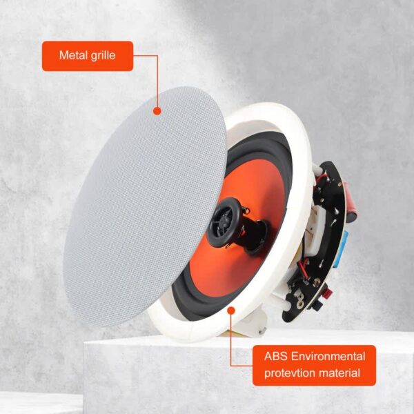 • شامل توری اسپیکر گرد و مقاوم در برابر لکه است  و می‌توانند مطابق میل شما رنگ آمیزی شوند.