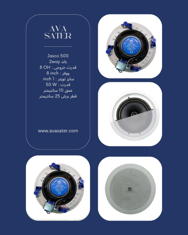 اسپیکر سقفی جاسکو Jasco-500 با امکان کار به صورت اهمی، ولتی از محبوبترین باند سقفیهای توکار جاسکو محسوب میشود. بلندگوی داخلی way-2 این بلندگو سقفی توکار دارای تیوتر 1 اینچی و ووفر ۸ اینچ بوده و فرکانس های زیر و بم را به راحتی ایجاد میکند. ترانس مچینگ 100 ولتی این اسپیکر توانایی نصب در تعداد بالا و فواصل طولانی رو فراهم کرده است.
